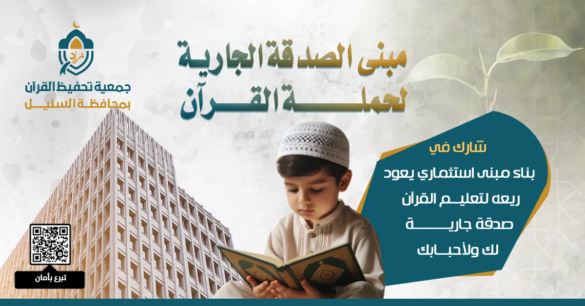 مبنى الصدقة الجارية لحملة القرآن مبنى استثماري يعود ريعه لتعليم القرآن الكريم لطلاب الحلقات القرآني...